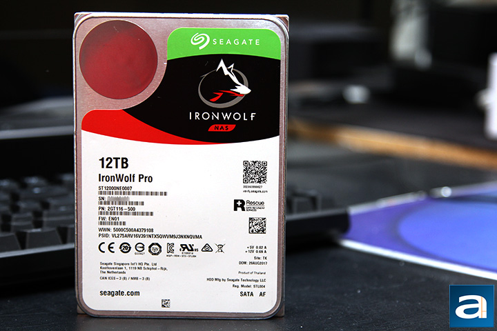 As always, with our storage reviews, before we move on to the benchmark results, let us briefly discuss the physical attributes of this hard disk drive first. The IronWolf Pro ST12000NE0007 12TB is your quintessential 3.5" hard drive from Seagate; the top of the drive is bare metal with a dull silver finish, and a large label placed across the middle. That said, the label has been updated to reflect Seagate's latest product branding, and the addition of color graphics make everything all the better. It is also nice to see the return of unique names, including IronWolf for NAS HDDs, FireCuda for SSHDs, BarraCuda for desktop HDDs, and SkyHawk for surveillance applications. The IronWolf Pro we are reviewing today weighs in at 705g each, or about 1.55lbs. This is exactly the same as the BarraCuda Pro ST12000DM0007 12TB according to the latest specifications sheet, both of which are equipped with relatively thin platters. On the label, you will spot information like its 12TB drive capacity, model name, serial number, model number, part number, firmware revision, manufacturing date, bunch of regulatory logos, and that it is a product of Thailand. The Seagate IronWolf Pro series come with a five-year limited warranty.