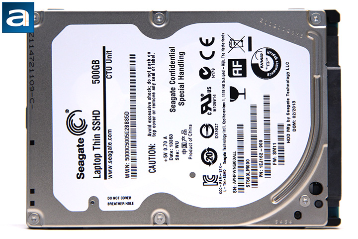 As always, with our storage reviews, before we move on to the benchmark results, let us briefly discuss the physical attributes of this hard disk drive first. The Laptop SSHD ST500LM000 is your quintessential 2.5" OEM hard drive from Seagate; all you have at the top is bare metal with a dull silver finish, and a large label placed across the middle. If you have owned a Seagate drive in the past before, this one is no different. It weighs in at 95g, or about 0.2lbs. Measuring in at about 100.35 mm x 69.85 mm x 7.0 mm, its thickness -- or lack thereof -- will ensure wide compatibility. On the label, you will also spot information like its 500GB drive capacity, model name, serial number, model number, part number, firmware revision, manufacturing date, and that it is a product of China. The Seagate Laptop SSHD comes with a three year limited warranty.