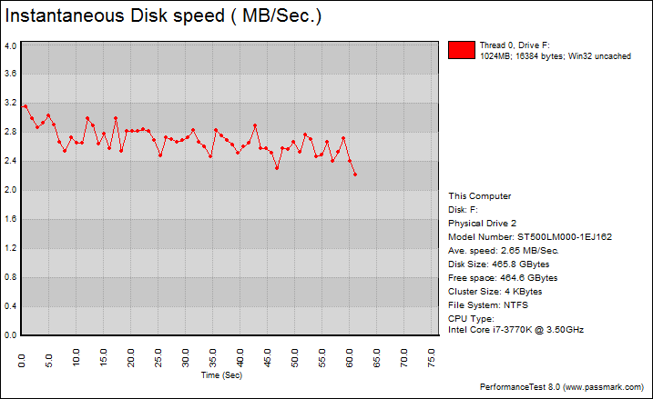 This Advanced Disk Test, which is part of PerformanceTest, measures the data transfer speed when reading or writing data to one or more disks. The speed that data can be transferred between memory and a hard disk drive is one of a system's most important performance aspects. There are quite a few factors which have a bearing on this speed and the Advanced Disk Drive Test allows the user to vary most of these factors and compare the results.