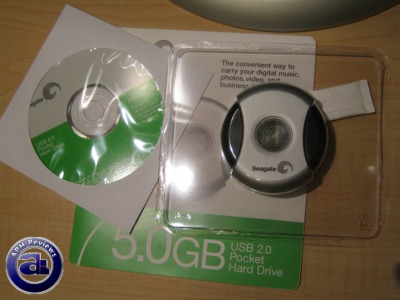 Out of the package, you'll receive a Seagate 5GB Pocket HDD (Although there is a 6GB variant, we'll just call it the Seagate 5GB Pocket HDD in this review). Also included are a quick setup guide and a driver/software CD. The Seagate Toolkit which is located on the CD is also on our Pocket HDD as well.