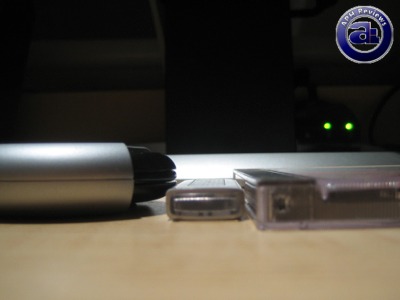 The rotary center of the Seagate 5GB Pocket HDD at the top also serves as an activity LED. Unlike the Cruzer Mini's activity LED which is lit all the time and blinks when there's disk activity, the Pocket HDD lights up only when there's activity (That's why the photo above was very hard to capture, at least for a decent shot). This implementation is similar to the HDD activity LED on your computer -- but this way it's hard to know if it's turned on or not. I would prefer the way the LED works on the Cruzer Mini; always lit and blinks during disk activity.