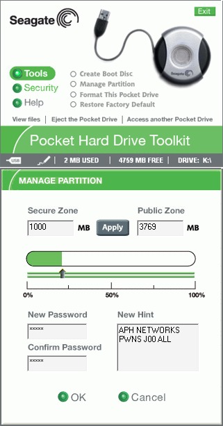 Repartitioning the Seagate Pocket HDD with the included software will cause you to lose data, so make sure you partition your drive appropriately before copying your files in to save some time. Having a password protected partition as well as a public partition is a great idea.