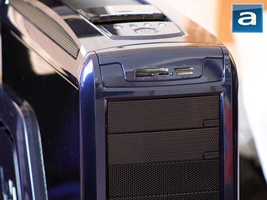 The front of the case is quite appealing to my tastes -- with a good solid mesh over the surface, it certainly did not look like the meshing is an afterthought in the design process. I especially like the easy to access card reader at the front, providing a way to quickly insert and read from your typical digital storage cards. All of the mesh at the front has filters directly behind it to keep dust out of your system. The top two panels are also bay covers that you can open and close easily without taking away from the look of the case. The reasoning for why just the top two covers have this, and not all of them is a bit questionable. I do have to say most people generally do not have the need for more than two optical drives so this is acceptable; however, those who do have more than two might find this slightly bothersome. The dust filters behind this mesh on the front are very easy to remove. Simply pull off the front panel, which offers a bit of resistance, but comes off easily, granting you access to the back side of the panel.