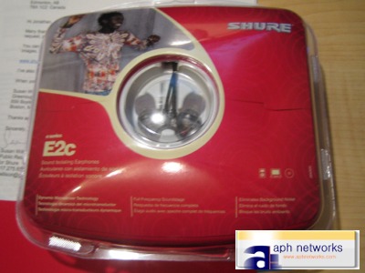 Anyway, inside the box is the press kit and a retail package of Shure E2c sound isolating earbuds. (You won't get the press kit if you buy one of these though :P )