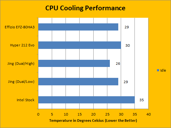 For careful representation, we have spent a lot of time to carefully simulate the exact same scenario in the cases provided to ensure accurate temperature measurements using the Cooler Master Hyper 212 EVO, Thermaltake Jing and the Intel stock cooler as a reference.