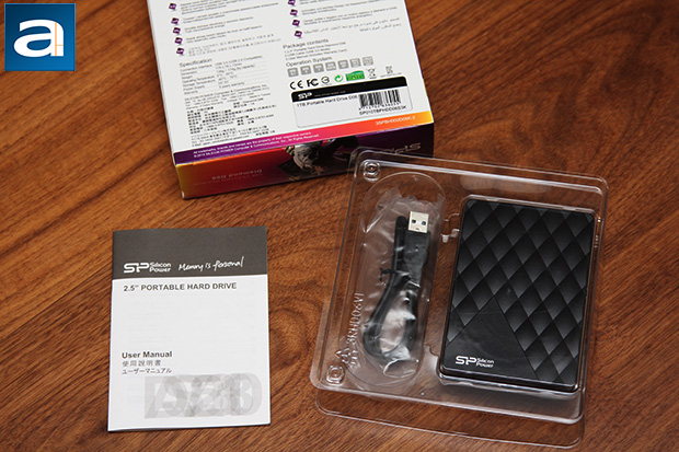 Out of the box, everything is neatly laid out, thanks to a clear plastic tray, and the fact there is not a whole lot of stuff to begin with. You will receive the Silicon Power Diamond D06 1TB itself, short USB 3.0 cable, and a user manual. Should 1TB not fit your needs, the Diamond D06 is also available in 500GB and 2TB capacity as well.