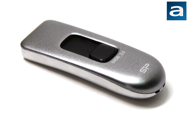 Taking a closer look at the unit, you can see its shell is primarily made out of two materials; matte finished silver plastic for the top, and zinc alloy for its base. Picking up the Silicon Power Marvel M70, the USB flash drive’s curved contour and ergonomic design felt like I was holding a really small racquet. Really, it is solid. As you can see in the photo above, the M70 has a retractable connector to make sure it is easy to operate with the push of your thumb. It also has a function to protect the connector, to some extent, away from dust or debris. On top of the device, there is the logo for Silicon Power; also in a very small font the capacity of the model -- which in our case, is 64GB. In addition to the small font, it reminds the user it works on the USB 3.0 interface, which allows it to be connected to a USB 3.0 port to speed up file transfers. Of course, it is backwards compatible with USB 2.0, but you will lose out on the speed. On the back of the device, there are standard regulatory CE and FCC marks, in which CE stands for Conformité Européenne, and FCC which stands for Federal Communications Commission. Both CE and FCC marks signify that the Marvel M70 meets the requirement of the conformity assessment procedure in the European Economic Area and the United States respectively -- and this is why you can buy this product. Alongside the marks, there is an internal product or model number "D33B29", which the factory put on so they can identify which product line it belongs to. At the end of the USB flash drive on the side, there is a keychain hole for your trinkets, or you can attach a lanyard on to it.