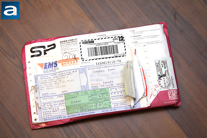 Our review unit of the Silicon Power Xpower PC3-19200 2x8GB came in a cardboard envelope all the way from the company's Taiwanese headquarters in Taipei. It started off the journey by postal operators of the Universal Postal Union. After crossing the ocean, it was handed over to the good people at Canada Post, who carried it inland to us here in Calgary, Alberta, Canada. The package was a little bit beat up, but with the amount of bubble wrapping inside, everything arrived safely in the end. Like the Fractal Design Define S I reviewed last week, I was on vacation when the RAM arrived. Thankfully, it was held at the post office for about a week until I came back to pick it up.