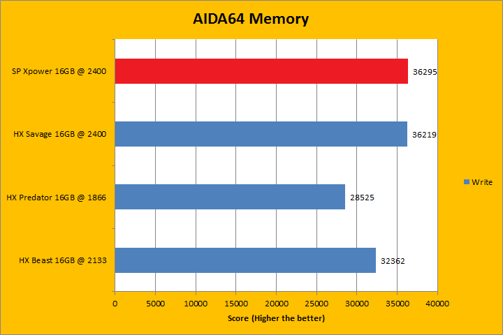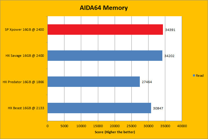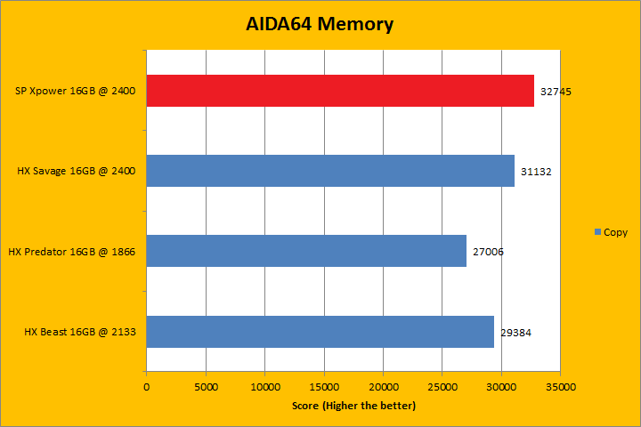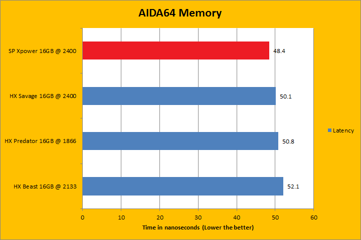 AIDA64's synthetic memory tests are the one next up to produce results for our review today. In pretty much all the benchmarks, we can see that higher memory bandwidth RAM kits are generally favored -- whether it is the Copy, Write, or Read results. This is probably the most unsurprising thing ever, consider the name of this benchmark does, in fact, reflect what is tested. Operating at DDR3-2400, the Silicon Power Xpower PC3-19200 2x8GB arrived consistently at the top of the pack compared to other kits operating at a lower frequency. This is pretty much what we have been expecting all along. What has been unexpected, however, was it managed to outperform the Kingston HyperX Savage HX324C11SRK2/16 2x8GB -- albeit by a very small margin every time -- in all of our tests above.