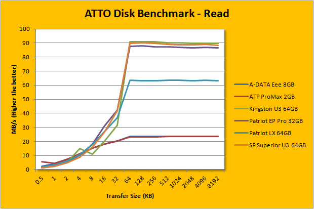 As far as the read speed is concerned, again, the Silicon Power Superior SDXC UHS-I U3 64GB delivered, on average, lower performance than the Kingston SDXC UHS-I U3 64GB under the curve -- but this time, they were a lot closer than it was in the write benchmark. Kingston's flagship card peaked at 91.003MB/s, whereas Silicon Power's entry came in a hair below at 89.979MB/s. 90% peak read speed is reached at 64KB transfer size in this test. Normally, if this was a USB flash drive, I would have criticized it for its low small file I/O performance. However, since you are going to be dealing with primarily large files anyway, the Silicon Power Superior SDXC UHS-I U3 64GB is simply going to be more than fast enough for any real world usage at the time of review. Based on my real life experiences using my Canon EOS 60D dSLR camera, shooting videos in 1080p, or firing off a burst of shots is not going to be a problem at all -- the Silicon Power Superior SDXC UHS-I U3 64GB is a very fast card. If you own a 4K capable camera, you really should not have any issues with either card. Obviously, the Silicon Power is not as fast as the Kingston, but it is significantly cheaper.