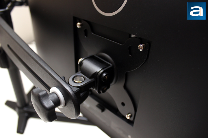 As for mounting, four standard VESA-compatible screws are provided for each side. SilverStone recommends you to first screw in two screws at the top, and place the monitor onto the head. However, before fully attaching the one monitor, I moved to the second monitor to place that on. This is because once one monitor is sitting on one side, the stand becomes out of balance, causing it to tip over. This would not be an issue with desk-mounted monitor mounts either, but as the ARM23BS sits merely on the surface, SilverStone recommends having a second person to help. This also means you will need to put two monitors on this stand, unless you can orient the single monitor in a way that still is balanced. Otherwise, once the stand is stable, you can finish the mounting process by screwing in the rest of the screws.