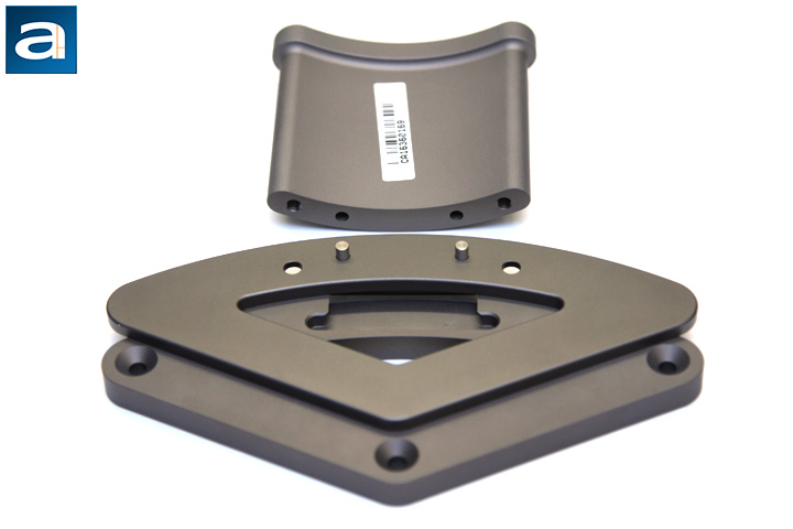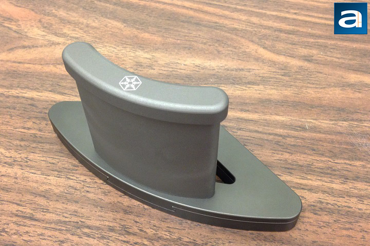 The headphone hanger of the EBA02 is comprised of two parts. As you can see from the photo above, the part that has direct contact to the headphone there features a nice curvature. Thanks to the shape, the weight of the headphone can be evenly distributed on the hanger, such that the headband shape will be preserved. If the hanger of a headphone holder is not well designed, the shape of the foam cushion on the headband could also be affected due to the gravity, and consequently the user will not feel comfortable wearing the headphone. To connect the hanger to the hanger base, users can find the two corresponding screws. The screws go from the flip side of the hanger base to be screwed in. You can see two holes on the hanger base plate and four holes on the back of the hanger in the above photo. The two holes on the base plate are for the installation of the hanger. The two axles on the base plate line up with the two holes on the inner sides of the hanger for precise installation. After the hanger and base plate are screwed together, they can be attached to the wall mounting plate.
