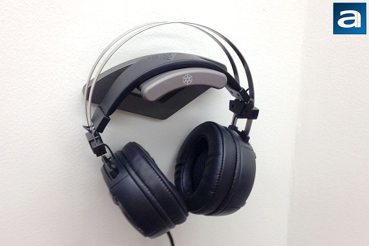After several test fittings of the EBA01 on the wall, I finally decided where to mount the headphone holder. Since I did not own the place, I had to use the provided double-sided tape to prevent damage to the wall. These strips were very adhesive, and it seemed to me if I could find any smooth surface like glass, there would be no problem at all. However, I chose to place the EBA02 on the wall with eggshell finish. In my case, the original 3M tapes did not work since they were unable to provide enough contact to the relatively rough eggshell surface. To solve this problem, the 3M Scotch outdoor mounting double sided tape would be a better choice. I wish SilverStone could have that included into the box, so that the EBA02 could be mounted almost on any surface without using screws. The charcoal color looked pretty good on the white wall. I put the GAMDIAS HEBE M1 RGB on the EBA02 and I noticed the curve of the headband matched very well with the curve of the hanger. There was no obvious stress point found on the headband. The headphone holder did its job to preserve the shape of the headband. The width of the hanger could only fit one headphone. Unlike the EBA01, which was capable of hanging two headphones, the EBA02 is designed only for one headphone. On the other hand, I also noticed there is no dedicated cable management on the EBA02, which is also disappointing.