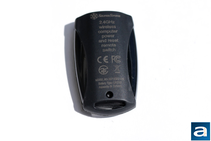 The back of the remote only has some writing on it stating what the remote is and some other miscellaneous information. At the bottom, right above where it can be attached to a key chain, is the small screw that holds the back cover to the remote. This cover can be removed to install an included CR2032 battery. The SilverStone ES02-USB remote is very light. I would say it is even lighter than most car remotes, though it is a bit bulky in terms of size.