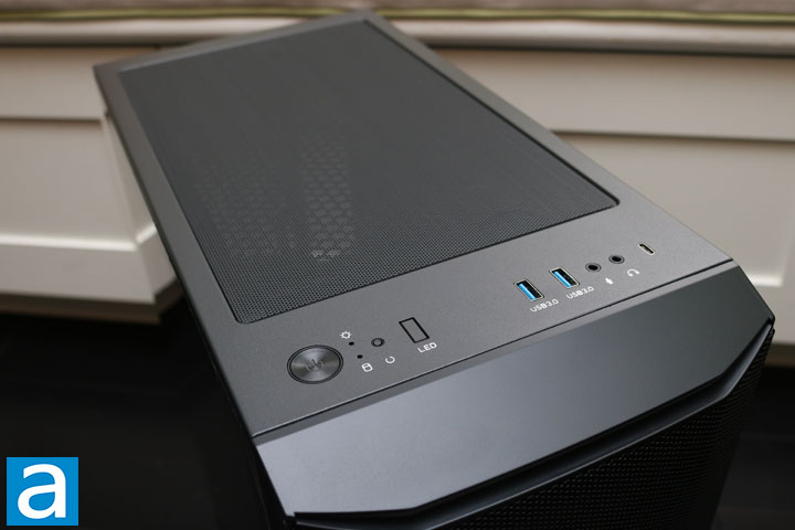 The SilverStone FARA 512Z has its I/O located on the top of the case at the front. A large circular power button is the most noticeable in this location. The button has a satisfying click when you push it. There is a smaller reset button found next to it, which helps in avoiding accidental presses. One major change from other cases is there is an LED button found on the front. This button cycles through different LED settings, which can be used in conjunction with the ARGB lighting hub. Next, we have two USB 3.2 Type-A ports, the 3.5mm audio jacks for your headphones and microphones, and a USB-Type C connector. The I/O of the case offers quite a bit of functionality. Seeing all these connectors is definitely a welcome sight.