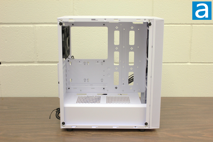 After removing the side panel, you can see the internal design of the SilverStone FARA R1. On initial glance, the internal layout is very similar to the FARA B1 at no surprise, which in turn is similar to the Primera PM02 we have reviewed previously. To be consistent with the exterior, the interior is also painted matte white. The paint is sprayed evenly inside the chassis.