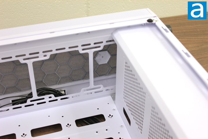 At bottom of the case, there is a power supply chamber with ventilation holes on it. Not only is it designed to shelter the power supply, the chamber is also the place for you to put up to one 3.5" and one 2.5" HDDs. The cool air for the power supply can be blown into the case through the dust filter protected ventilation holes at the bottom of the case directly. If your SilverStone FARA R1 is fully loaded with fans, graphics cards, and long radiators, cool air can be pumped by the fans into the chassis through the air filter at the front panel, hit the graphics card, and be expelled out through the exhaust grille at the back panel. Since no 5.25" drive bay is present in the product, there is nothing to obstruct airflow.