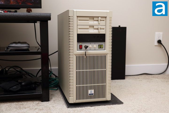 Once plugged in, I powered my system on to hear and see things turned on. There were no holes on the sides to let me peer inside, but the fans spun to life, and I saw different front I/O lights flash. It was a nostalgic moment to see such an old-looking box power on, even if it has slightly more modern components inside.