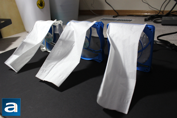 Using our tried-and-true APH proprietary 'scientific' method for measuring fan performance we devised back in 2007 by our Editor-in-Chief Jonathan Kwan, it is no surprise we are using it for this review as well. While it is not exactly the most objective method you can use (No kidding haha), there are a few attributes of fan performance that we can obtain clearly from our observations: Airflow, airflow consistency, and amount of static pressure generated. It visually portrays characteristics of each fan.