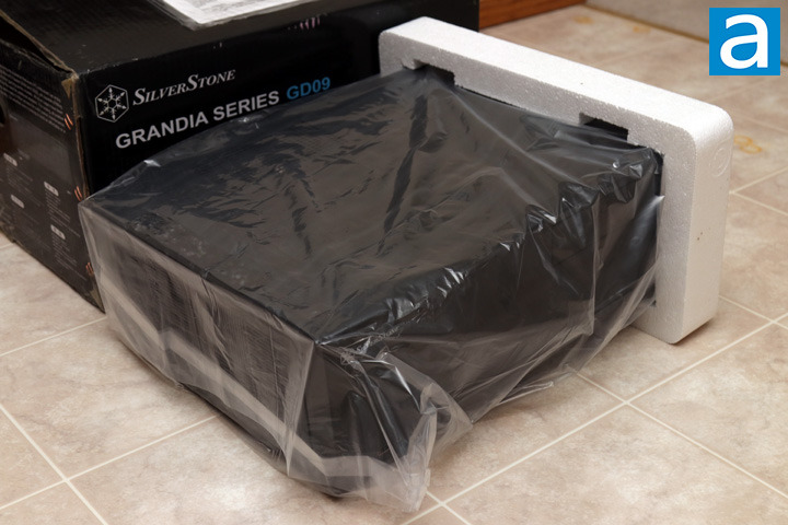 As with most cases, the SilverStone Grandia GD09-C is packaged in a clear plastic bag to prevent surface marks and scratches on the panels. The whole enclosure is held in two white Styrofoam brackets to prevent impact damage from appearing on the physical case itself, although this is pretty standard foam used here. Otherwise, a small bag with some documentation is included inside the Grandia GD09-C. There is not much else to speak of, so let us move on to the physical look of the case.
