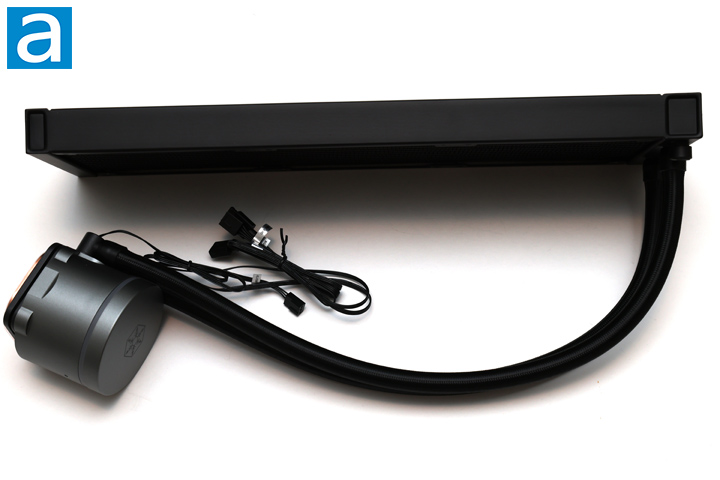 The IceMyst 360 may be holding a name not previously used by SilverStone, but there are a few similar features between this all-in-one liquid cooler and its competition. This includes the typical black 360mm radiator with braided black tubing. While both of these are the same color, the one element that stands out is the silver-gray pump combination block. Branding on the unit is relatively low, with the translucent SilverStone logo found on the top of the CPU block. This rotating head houses additional lighting, but we will explore these later on. Otherwise, the materials used here are as expected with a large aluminum radiator, rubber tubing lined with a mesh material, and an opaque plastic exterior on the pump head. Several cables lead out of the processor block with connections to control the lighting and the pump.