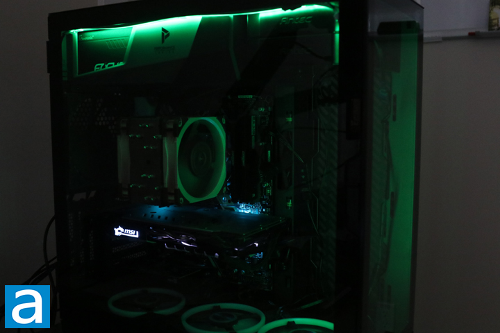 With everything powered on, I cycled through some colors including the standard red, green, blue, and white. The colors you can output will rely on the controller or motherboard you utilize. I also disabled the other lights in my system where I could, including my three Corsair iCUE QL120 RGB fans on the bottom, so that I could judge the lighting capabilities of the LS04 alone. Speaking of which, I think the SilverStone LS04 did a good job of shining with good color accuracy. They were also able to handle typical RGB effects like a rainbow wave. Lighting effects were effectively diffused evenly with no glaring single bright spots even when you look directly at the strip. On the other hand, the Antec P120 Crystal is a pretty big case and not all of the parts inside were illuminated by the two strips alone. The red, green, and white presets were able to illuminate the interior while the blue setting was a bit darker. Obviously, this can be alleviated by getting more strips in your case, but I think I still would have liked to see a slightly brighter emission.