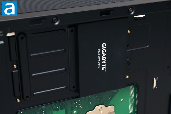 In terms of drive options, we have the drive sled at the back of the motherboard where I installed a Gigabyte UD PRO 256GB 2.5" SSD. This metal piece is held on by a single screw and can accommodate two drives. You can also use the aforementioned drive cage to hold another three more storage drives, for a total of five in the Lucid LD01. This is a pretty good number, especially considering the smaller form factor. Cabling space for drives here was decent, as I did have to squish a bit of the SATA and inline power cables but this is nothing new. As for the drive cage, I really liked the plastic sleds being tool-less, as installing 3.5" drives can be done in a cinch. Obviously, if you install the smaller 2.5" drives you will need screws, but this is as expected.