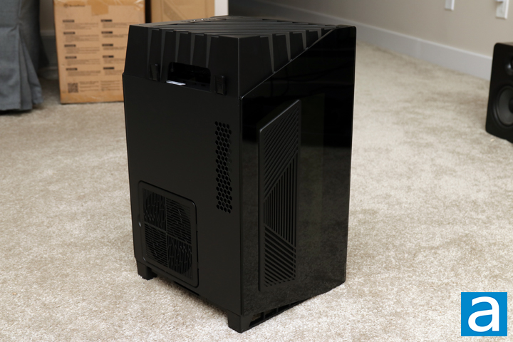 The SilverStone Lucid LD03-AF also keeps the same case dimensions, making it slightly big when we consider it is designed for smaller motherboards. At dimensions of 265mm in width, 414mm in height, and 230mm in depth, this case is taller than it is deep or wide. As for the weight, the Lucid LD03-AF weighs in at 5.22kg, which is actually lighter than the original Lucid LD03. The reason for this will become clear as we continue on. Even so, we still have the same mixture of plastic, glass, and steel to make this exterior. The composition of these premium materials makes the case feel quite solid, though I would have liked to see more metal and less plastic on the exterior. In addition, glass acts as an excellent fingerprint magnet, so do take caution when handling the case.