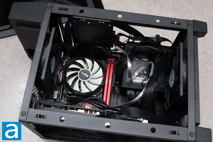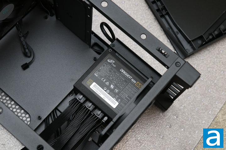 As expected by now, you should know my first step is to install the power supply at the bottom of the SilverStone Lucid LD03. The unit in question is the recently reviewed FSP Dagger Pro 650W. Removing the metal bracket with a screwdriver, I mounted this SFX power supply and put the bracket back into the case. As you can see, even with the necessary installed cables, it does not take up too much room. SilverStone does again mention we can use the longer SFX-L size, though they do not recommend any unit longer than 130cm. After plugging in the modular cables, I routed them to the necessary areas and continued with my installation process.