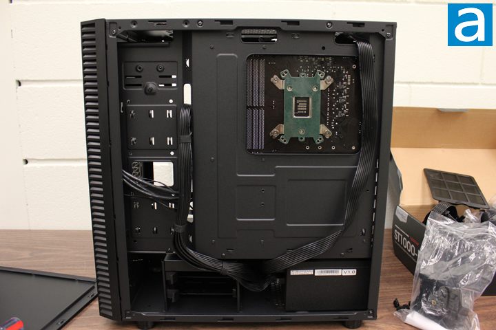 After connecting all the wires needed for the installation, I put the storage cage back in the PSU chamber. I did not have any hard drive to install, since I just had one M.2 PCIe NVMe SSD, the Western Digital Black SN750 NVMe SSD 500GB installed on the motherboard. I put the storage cage back in simply because I did not want to lose it. The rest of the installing process was really smooth. Since I did not have any 3.5" drives, the power supply chamber was very roomy. The big opening beside the motherboard tray was very handy. I would have still liked to see rubber grommets, not for the safety of the cable, but just to prevent the thick power cable from moving too much. As you can see from the above picture, the thick motherboard power cable can be fitted into the opening in my case. There is still plenty of room for other cables.
