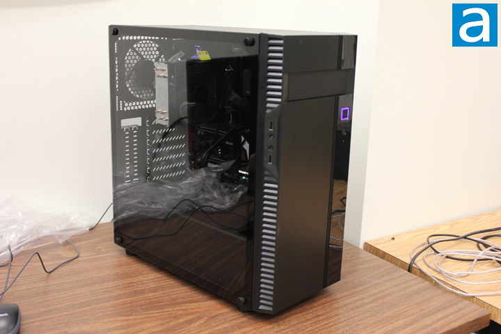 After everything has been installed properly, it is time to press the power switch. As you can see from the above photo, the only thing that lights up is the power switch. After the power is on, the PS14-E keeps a cool stealth look. I am the kind of person who really cares about the noise level of my computer. In this build, I had three fans running in the case. As it turned out, my computer was really quiet, thanks in part to the thick tempered glass panel. On the scale of 0 to 10, where 0 is totally silent and 10 is a jet taking off, I would rate my system at 3.0/10 regarding noise emissions during normal operation. Please note the fan speed control on the motherboard can further bring down the noise level by reducing the RPM of the fans when the computer is not under high load.