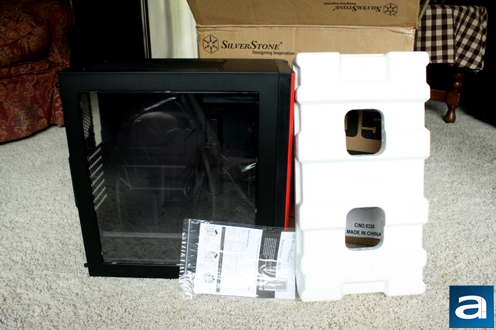 The packaging was very simple, and good enough to keep the unit safe. There are two big Styrofoam blocks to keep the Redline from moving around, and to give it some padding. The case itself is covered in a plastic bag, and then the plastic side panel had some more plastic to further protect it from any scratches. Included was a small booklet with installation instructions for all the different components. Inside the case was a small bag with all the required screws for the motherboard, hard drive, and other components. All of the packaging was chosen to keep costs low, while still providing enough padding to keep everything safe and sound during transport.