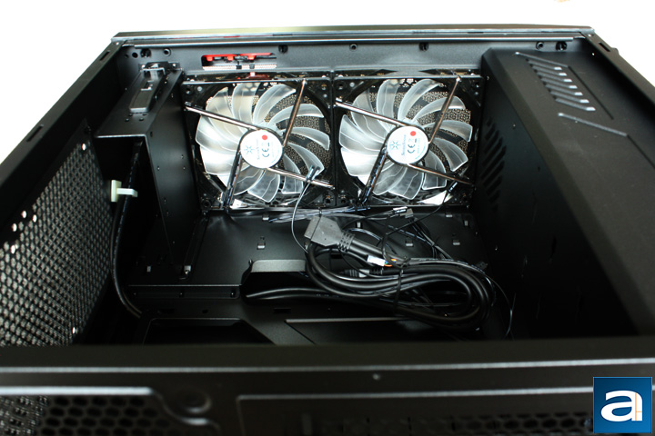 As I have mentioned in some of my previous reviews, I really like a clean and open chassis interior. The SilverStone Redline RL05 has plenty of open space for good airflow from the two 140 mm fans at the front. From this picture, it is easy to see two different compartments; a lower separate chamber is made for the power supply, and some cable management room is separated out as well for better thermal control. At the front bottom, there is even some room for an 80mm fan to help cool the power supply. At the top left is the 5.25 inch bay, and from what I can tell, it cannot be removed. The cable management is a simple long cutout to the right of the motherboard tray. Unfortunately, there are no rubber grommets. Instead, there is a piece of plastic covering quite a bit of the hole to hide the cables. This is a simple yet effective solution to keep costs down. Lastly, the case supports up to a 14.7 inch graphics card.