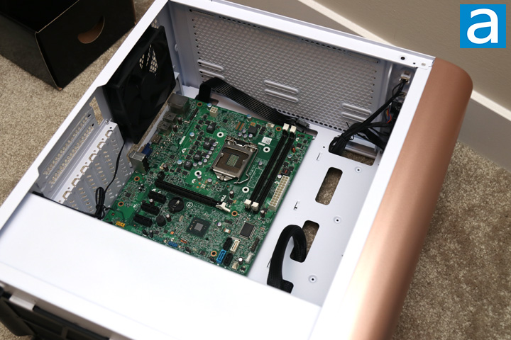 I installed a mATX motherboard here, but from this angle, it looks like it fills the entire Silverstone SETA A1 in height. This is not the case, of course, as the larger ATX motherboard form factor will fit. I followed the routed power cables and plugged them in in addition to plugging in the fans and the connectors. SilverStone comments that users can put in CPU coolers as tall as 175mm, while graphics cards up to 350mm in length will also fit here. Most longer graphics cards with three fans should comfortably fit here, unless you are pairing it with a front mounted radiator. These are still solid compatibility specifications once you put into perspective the overall footprint of the SilverStone SETA A1. Otherwise, I wish we had grommets on the routing holes to hide some of the excess cables.
