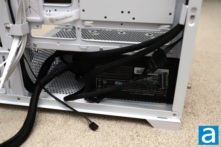 The installation process into the SilverStone SETA A2 is a straightforward one. Starting at the back, I slotted the be quiet! Straight Power 12 1200W into the back mounting plate and secured it to the SETA A2. With the power supply's 18.0cm length, there is still quite a bit of space in this basement. SilverStone says you can fit a unit up to 22cm in length. I continued building by routing all the required cables into place. Despite the number of drive locations, I only have M.2 drives in my system, therefore I did not use them. In fact, as you will see later, I removed the front drive cage.