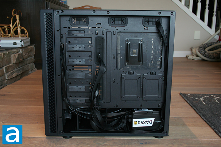 Installing my power supply at the bottom of the case was a very simple process. I settled with SilverStone's own Decathlon DA850 Gold 850W for this build, which has a length of 140mm. I simply slotted the power supply against the drive cage and used a screwdriver to insert the Phillips head screws. SilverStone recommends a maximum PSU length of 250mm, which mine cleared with ease. After installing my PSU, I routed all the necessary cables via the back of the case.