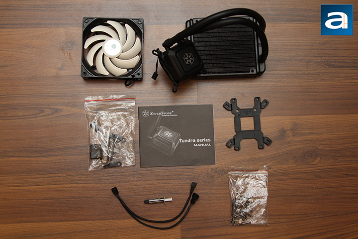Taking the SilverStone Tundra TD03-LITE out of the box reveals the manufacturer has many items waiting for you. The majority of the space inside was taken up by the TD03-LITE closed loop water cooler. Next, you will find the 120mm fan, fan screws, AMD brackets, backplate, Molex to 4-pin adapter, Y-splitter, and other accessories for installation. The unit does come with the Intel bracket already installed onto the unit for you, but if you are a AMD user, these brackets can be replaced by unscrewing them from the water block.