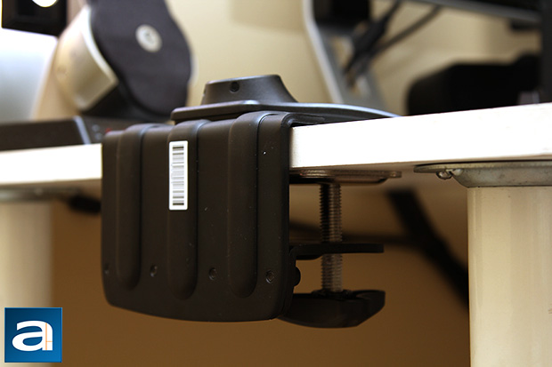 Now for those who realize the implications of "How hard can it be?" every time Jeremy Clarkson says it, rest be assured us here at APH Networks does not have a budget for blowing up any LCD monitors, nor were we planning on sending my desk crashing down in a spectacular manner. In other words, I will actually assemble it correctly for our review today. To start, you will need to put the clamp together. The clamp consists of two strong metal parts; simply align the upper and lower piece, and attach four screws from the inside. Next, install it to the side of your desk by securing the pair of feet below. The SilverStone ARM Two can accommodate desks as thin as 8mm all the way to surfaces as thick as 50mm, so you are pretty well covered for anything ranging from glass to thick wooden tables. I found the metal clamp to be very well made, and once installed, it is very secure. I am also pleased with the fact its wall clearance along the edge is minimal, so if your table is placed against the wall like me, you will need to increase the gap marginally, if none at all.