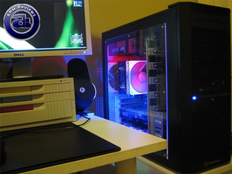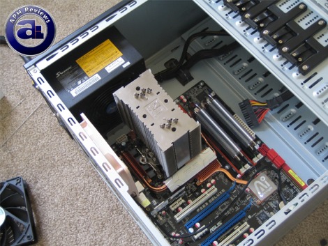 As far as installation goes, everything went as planned. Fairly easy to work with as far as a midtower goes; I installed the power supply first -- although without a crossbar at the top and tons of room at the back installing even larger power supplies should not be a problem at all. Motherboard is straightforward; nothing in particular and I had no problems fitting it in as there's lots of clearing on the side. I did end up replacing all the fans on the SilverStone KL-02 with a Noctua NF-S12 at the back and a NF-P12 in front, because in my opinion the 1200rpm SilverStone fans are way too loud (For my tastes, although they are within average for stock case fans) -- turbulence and motor noise is evident.