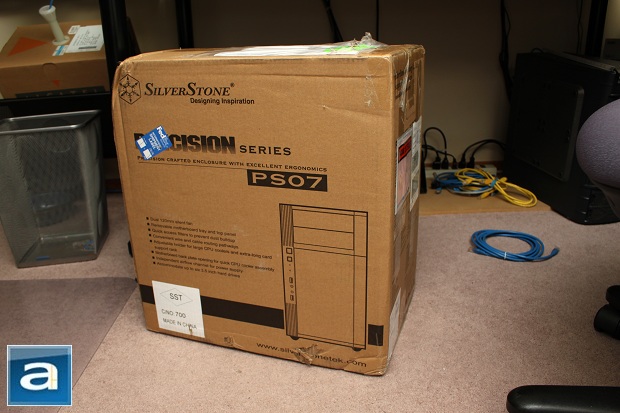 Like some of the chassis that we have reviewed at APH Networks earlier, the SilverStone Precision PS07 came in a rather simplistic brown corrugated cardboard box from our good ol' buddies down south in California, USA. I'm rather pleased with FedEx Ground's shipping and handling, as damage to the exterior box was kept to a minimum. Taking a look at the box itself now, you can see the company logo printed on the top left corner, while its model name is shown just below it, followed by number of main features on the left side and a simple outline of the chassis on the right. If you wish to go into a bit more detail, the back side of the box shows some additional features of the chassis. Without wasting too much of your time, I'll leave that to your own time to investigate.