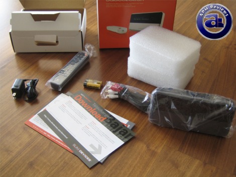 Everything was well packed inside the retail box; with foam brackets for holding the Squeezebox in its place, as well as a second box for the accessories. We got accessories right out of the box, including a remote, AC adapter, Panasonic AA batteries (Usually Logitech wireless keyboards/mice come with Duracells, see another difference?), as well as a 6-foot RCA cable. A manual and short guide is also included for setup and basic usage instructions.