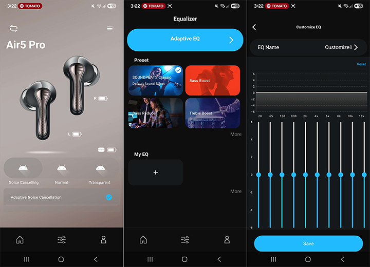 Overall, the audio performance of the SOUNDPEATS Air5 Pro was great for the price bracket. The active noise cancellation is excellent in terms of isolating you from the rest of the world. If you are like me and like a flatter sound signature, the SOUNDPEATS Air5 Pro is quite good. If you want to adjust the profile, SOUNDPEATS offers the ability to adjust your listening experience using their app called “PeatsAudio”. As shown in the image above, the app is fairly simple to use, and has three main pages. The first page, you can adjust between noise cancelling, normal, and transparent mode. The Equalizer page has four preset options to choose from, or you can make your own. The Customize EQ page is quite standard for anyone who has manipulated their EQ settings.