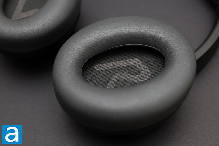 The SOUNDPEATS Space looks quite typical with some minor accents to make the whole thing look a bit more interesting. Most of the exterior is black and gray with some gold accents around the outer earcups. It is worth noting the Space also comes in white and tan variants if you prefer. Its design is rather uninspiring, although this is not necessarily a bad thing. It blends smooth curvature on the ears with defined edges and corners, blending a sleek finish with a utilitarian design. Each side of the headphones has a large "S" logo marked in a slightly warm gray color for some accenting. This also matches the color of the grille over the microphones on the Space. Overall, the look of the SOUNDPEATS Space is standard, with nothing tangible to make it stand out or fall behind the competition.