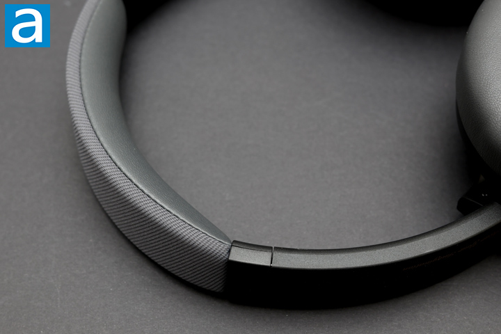 At the top, we can get a closer look at the headband of the SOUNDPEATS Space. When you extend the ears, the arms reveal the internal steel band that enhances the overall structural integrity. The movement is notched, so you will both hear and feel each step. It would have been nice to see visual lines to help users remember how far they have extended their ears. At the very top, we find a bit of memory foam padding with polyurethane leather where it makes contact with your head. Additionally, there is mesh fabric at the top, providing a nice contrast in feel.