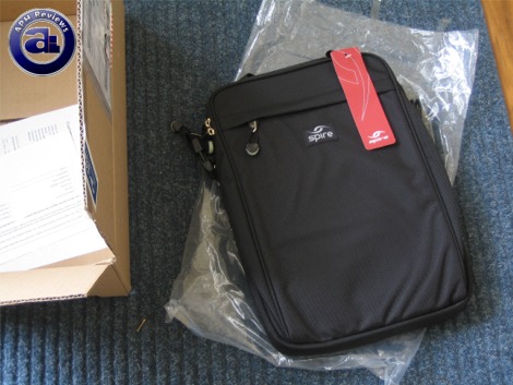 Our review unit of the Spire Dart came from Spire's offices in the States. With a surprisingly large box for a laptop bag, it was shipped in a corrugated cardboard box using United States Postal Service Express Mail International. It was then transferred to the Purolator courier in Canada, I would have known because the same friendly Purolator man who came almost weekly had yet another package in his hands. Everything arrived in perfect condition; even the box itself was not beat up.