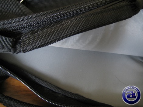 Located at the top of the Spire Dart is a double section, padded carrying handles. The slim wrapping over the default attachment to the bag itself connects to the back, with the second one located between two zippers as shown above. Two distinct compartments are designed within the Spire Dart, as enclosed by the dual main zippers on the bag itself that extends full length. The rear compartment is fully padded to hold the laptop itself, while the front compartment is half padded (Because of the partition between that and the laptop section) to hold accessories such as the AC adapter and mouse.