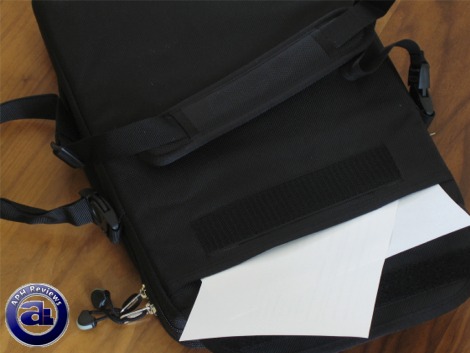 Residing at the back of the laptop bag is a Velcro enclosed flap. This thin, full height pocket is designed for storage of papers and other documents -- which is one feature I've always found handy in most laptop bags and sleeves I've used. I was delighted to see this in the Spire Dart laptop sleeve as well!