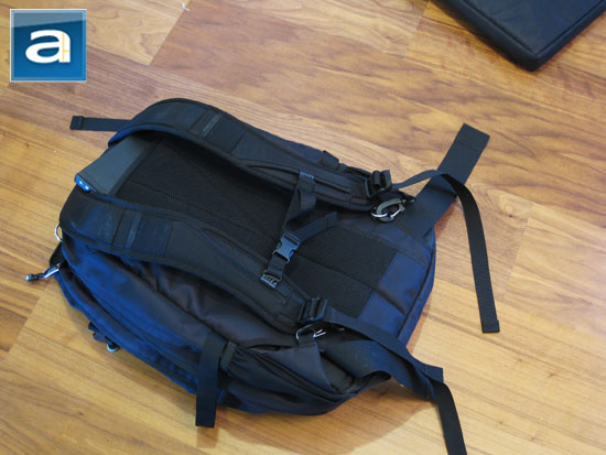 Beginning with the shoulder straps, they are intelligently shaped and curved to accommodate the wearing position of most people. With pockets on each shoulder strap for items such as cell phones, and thick padding combined with soft mesh covering the entire body-facing side of the straps, it makes the Spire Torq quite a comfortable backpack to carry. Length adjustable straps are located at the bottom, which clips onto the backpack itself via a pair of rings. I have to complain that the length adjustments don't work very well at all, as it is functional only when the normal force is offset to a very low degree compared to the force of gravity. This means that you might have to end up adjusting the length of your Spire Torq every time you use it.