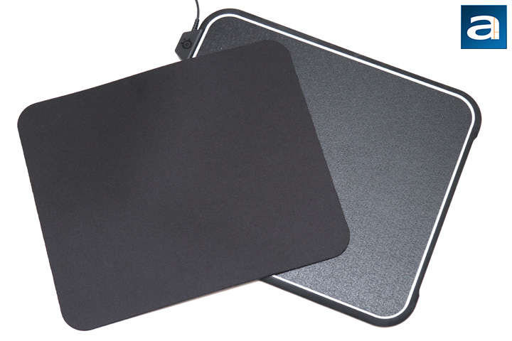 Before we continue on to the surface inspection, let me quickly go over the advantages and disadvantages of cloth-based and hard mousing surfaces. Cloth-based surfaces provide better comfort and control, are easier on mice feet, generate little noise during use, can even out some imperfect surfaces, and are more portable. On the other hand, hard surfaces generally come with better glide performance, and can be easily cleaned of dust, dirt, and liquid. This can include human liquids too, such as sweat from your hands. Plastic, aluminum, glass, or any other solid surface can easily be run under the tap to restore it to original condition. Now, we will take a closer look at the two surfaces provided with the SteelSeries QcK Prism.