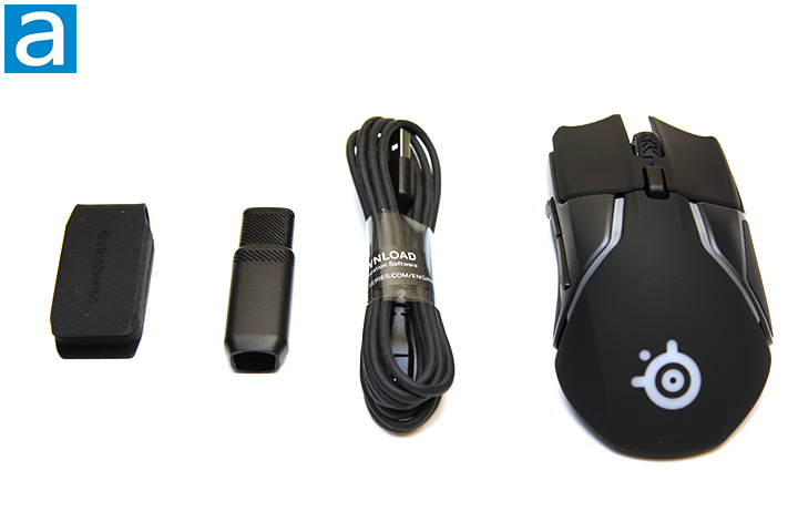 One thing the SteelSeries Sensei Wireless had that the Rival 650 Wireless does not is a dedicated charging station. I really liked the dedicated charging station that also doubled as a wireless transceiver. Instead, the Rival 650 Wireless comes with a small USB transceiver, USB extension adapter, and a USB cable, shown in our photo above. The USB cable, when connected to your Rival 650 Wireless, charges the battery and turns it into a wired mouse. Unfortunately, there is no constant battery indicator. The wheel with flash green, yellow, or red for five seconds when you first turn it on depending on the battery level. It would be very useful if it can be set in software to use any of the LED zones to always show the approximate charge. Also, when the Rival 650 Wireless is turned off and is charging, the wheel LED will blink sharply until it is full. This could be quite distracting at night if you are trying to charge your mouse while you are sleeping. Using fade would be much better. Like the Sensei Wireless, you cannot really charge the mouse when your computer is off even if it has an always-on USB port; the LED will blink continuously as if it does not know its own battery status.